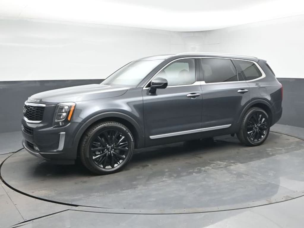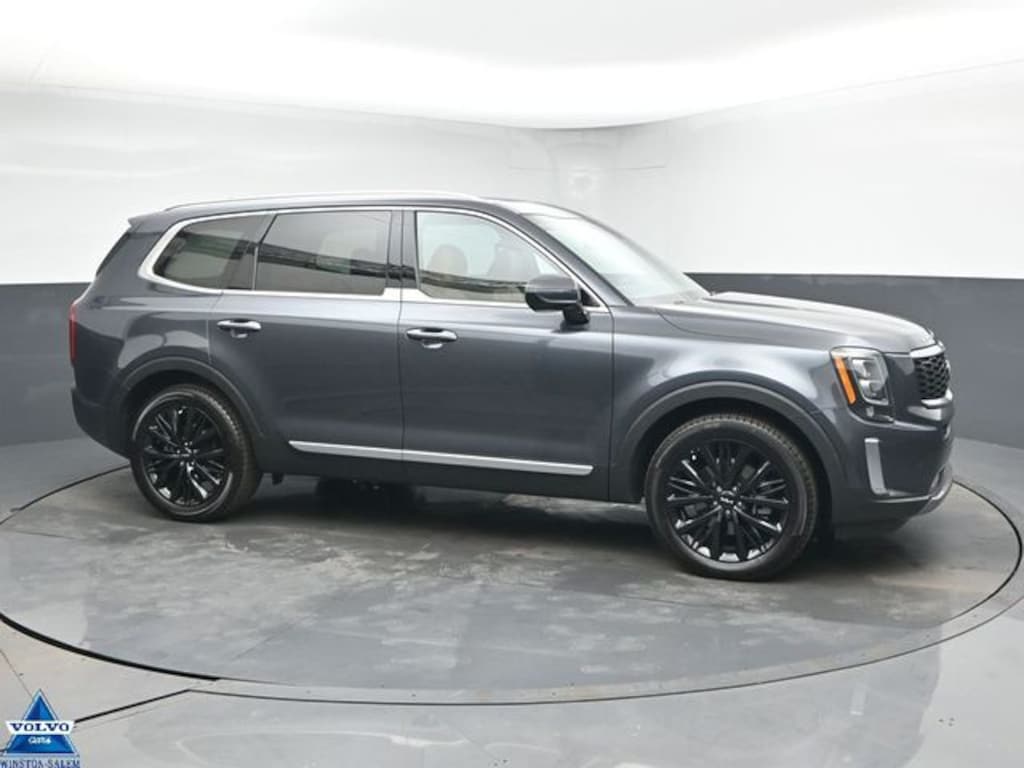 Discover family-friendly capability and upscale comfort in this pre-owned 2022 Kia Telluride SX at Volvo Cars Winston-Salem. Finished in sophisticated Gravity Gray exterior, this three-row SUV features luxurious Black interior with SX Butterscotch Leather Seats and premium Leather Seat Trim, offering spacious, refined accommodations for up to seven passengers.