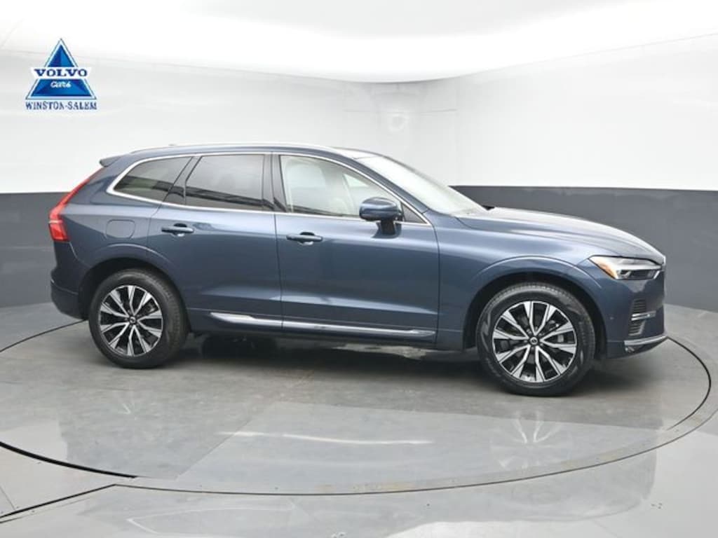 Discover refined Scandinavian luxury in this pre-owned 2023 Volvo XC60 B5 Plus Bright Theme at Volvo Cars Winston-Salem. Finished in Denim Blue Metallic with Blond Leather Upholstery, this used Volvo XC60 pairs a sophisticated metallic finish with a warm, light-filled cabin and premium Scandinavian craftsmanship.