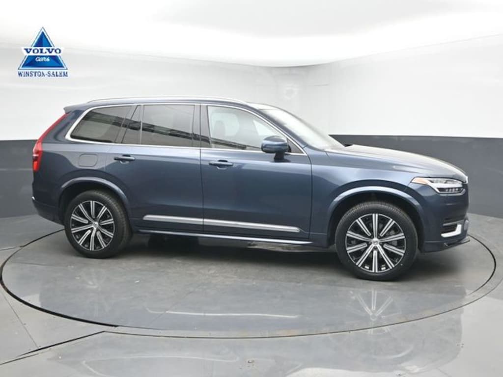 Discover refined Scandinavian luxury in this pre-owned 2023 Volvo XC90 B5 Plus at Volvo Cars Winston-Salem. Finished in striking Denim Blue Metallic, this used Volvo XC90 commands attention with its elegant lines and confident stance, enhanced by 20-inch 5-Spoke Black Diamond Cut Alloy wheels.